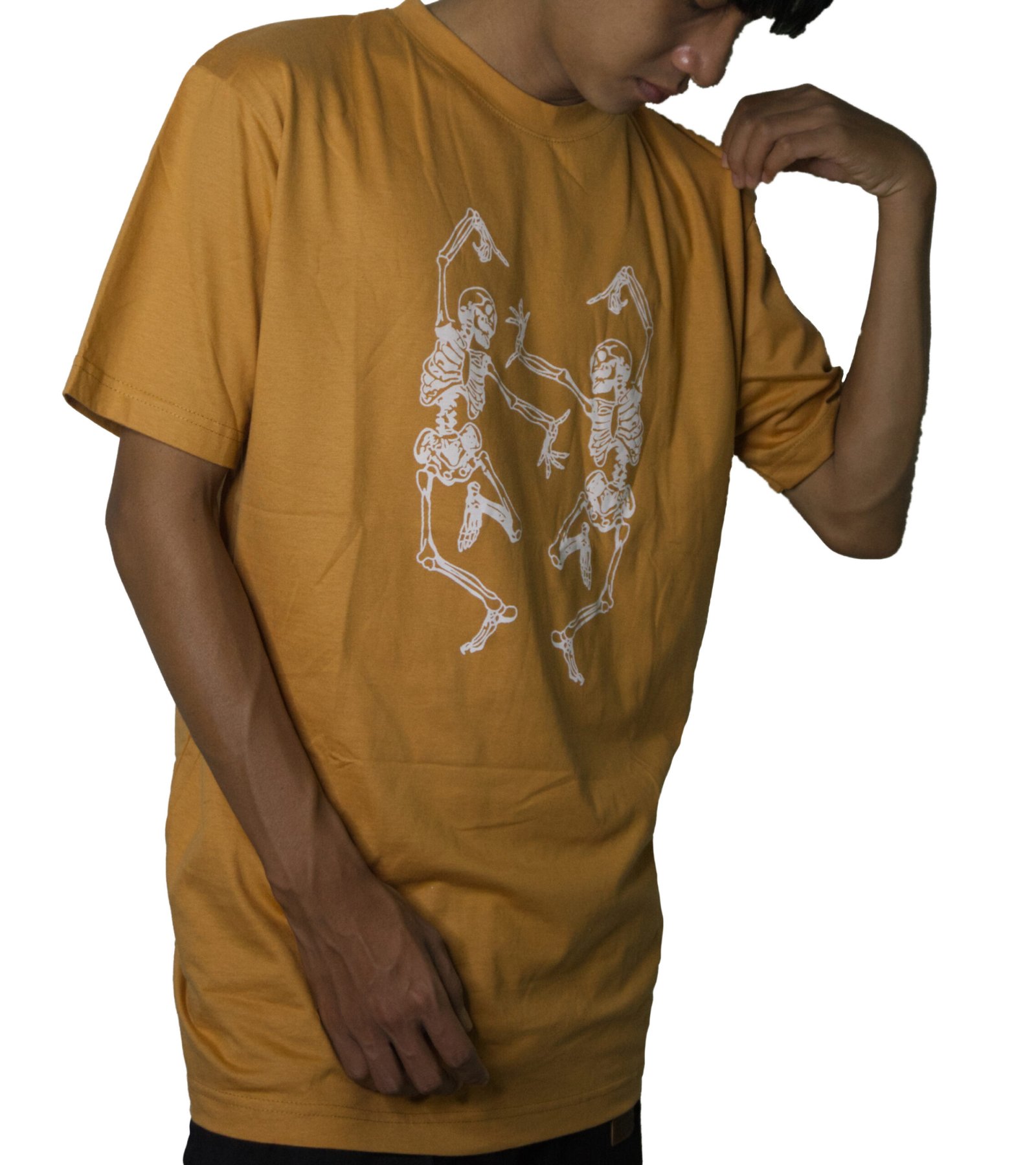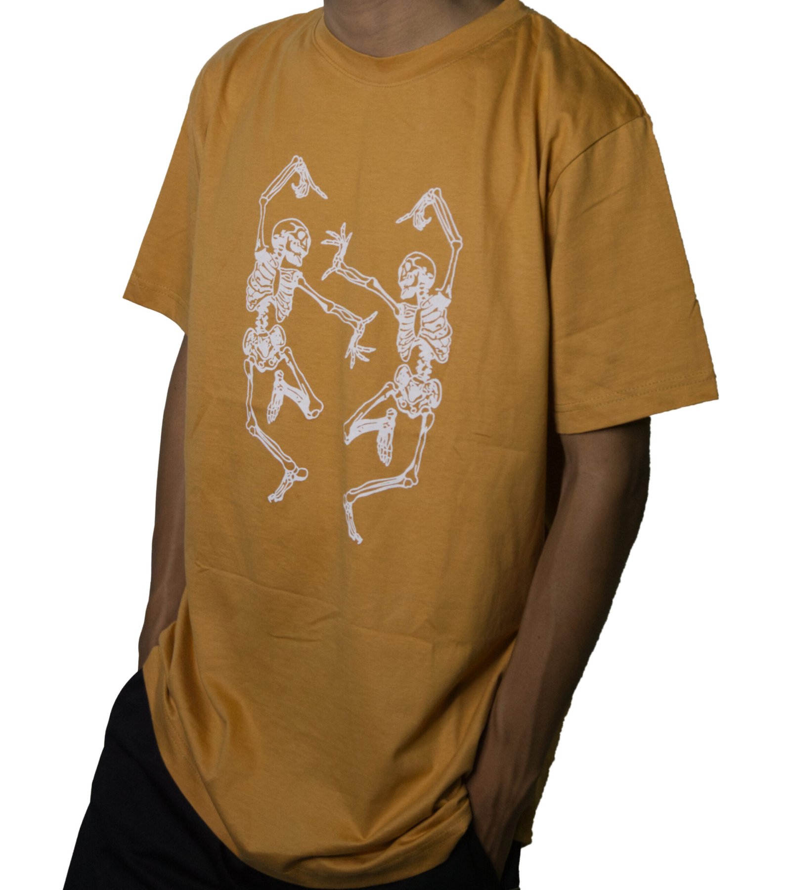 Be the envy of all your friends with this one of a kind Dancing Skeleton Mustard Nude Oversized T-shirt from Sonderland! This shirt is made of durable, high-quality material, and features a rounded neck design. Sonderland has a wide selection of anime t-shirts with uncrackable and unpeelable designs and fashion styles to suit your needs.