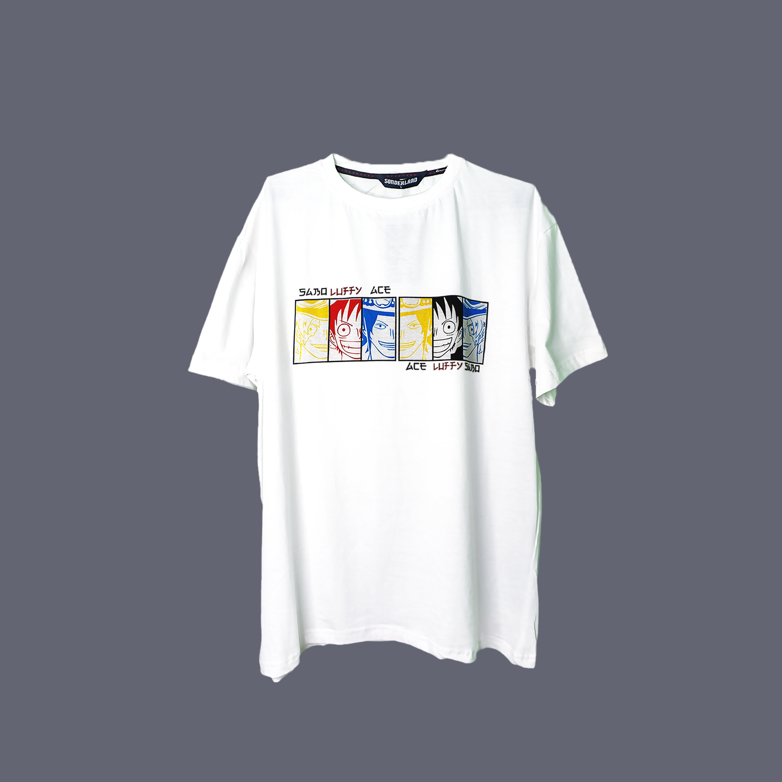 One Piece Relaxed Fit T-Shirt Ace Luffy Sabo White